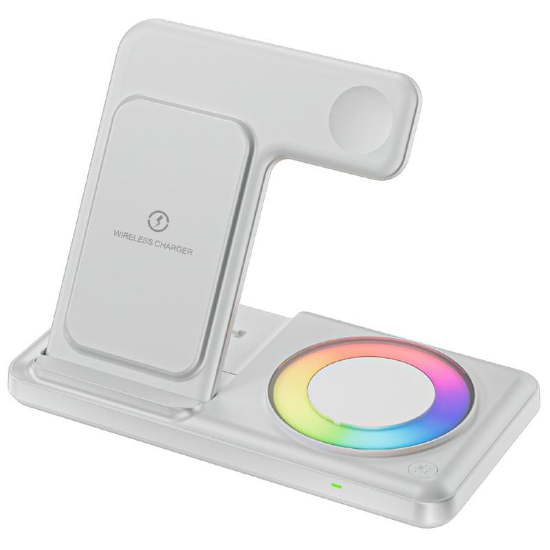 Q50D 4-in-1 klappbares kabelloses Ladegerät - 15W Schnellladestation mit RGB-Umgebungslicht