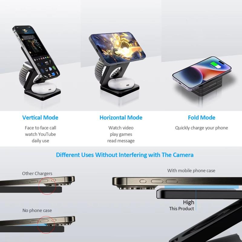 Qi2 15W 3-in-1 faltbarer magnetischer kabelloser Ladeständer - für iPhone, Apple Watch & AirPods