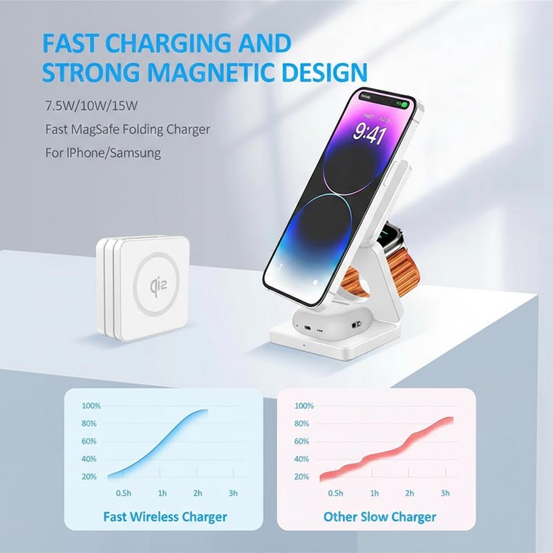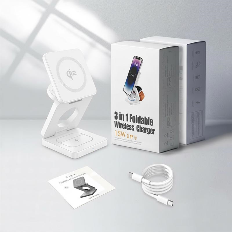 - 1 × Qi2 3-in-1 faltbarer magnetischer kabelloser Ladeständer