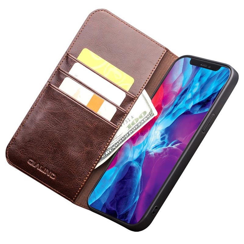 Qialino Classic Lederhülle mit Geldbörse für iPhone 13 Pro