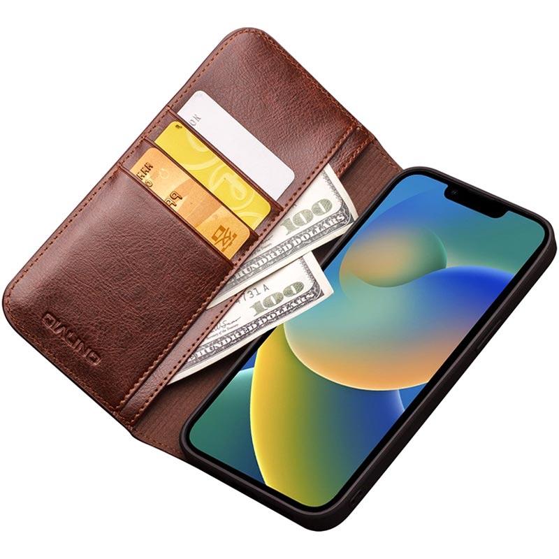 • Qialino Classic Lederhülle mit Geldbörse für iPhone 14