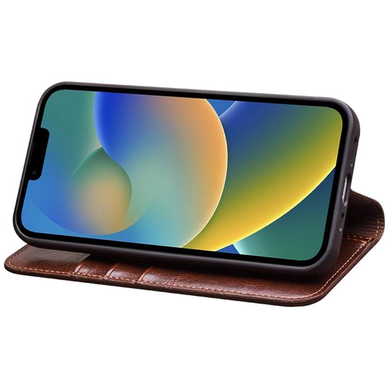 Qialino Classic iPhone 14 Lederhülle mit Geldbörse - Braun