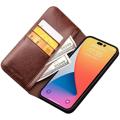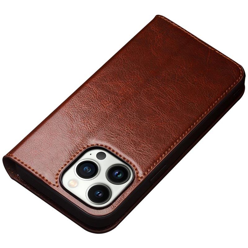 Qialino Classic iPhone 14 Pro Lederhülle mit Geldbörse - Braun