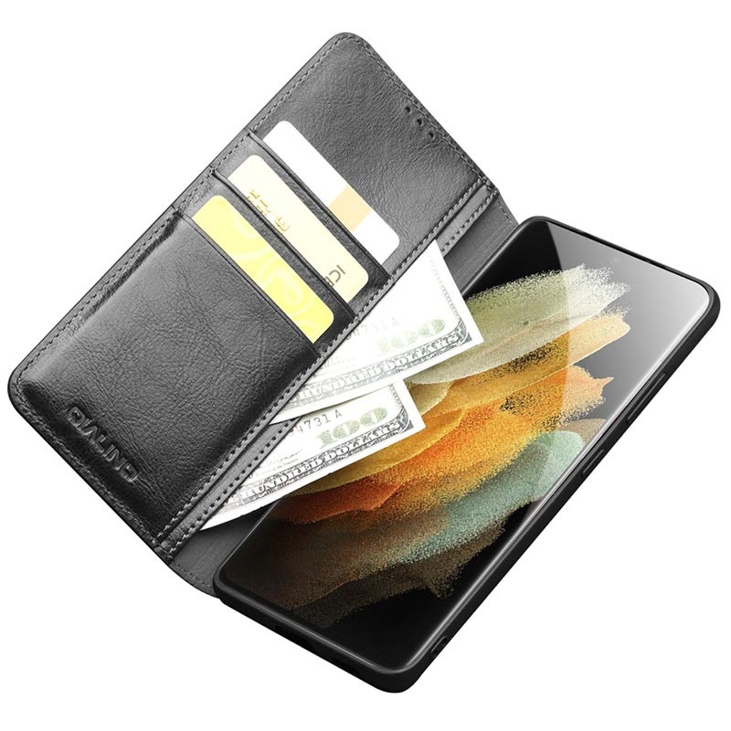 Qialino Classic Samsung Galaxy S21 Ultra 5G Lederhülle mit Geldbörse
