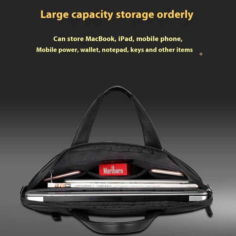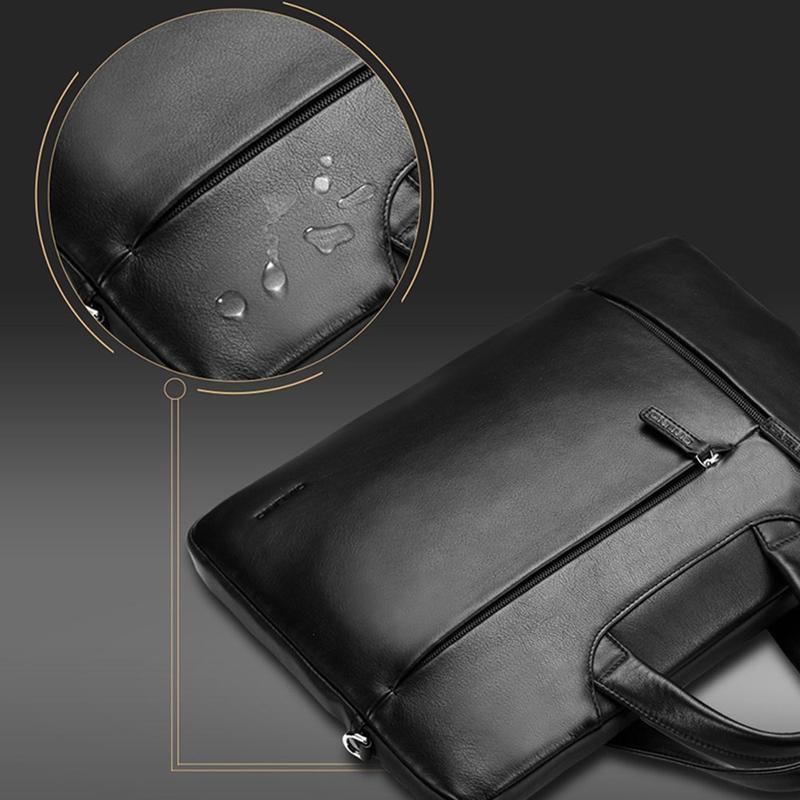 Gönnen Sie Ihrem Notebook eine erstklassige Behandlung mit dieser Laptoptasche von Qialino, die aus hochwertigem Rindsleder gefertigt ist, das alltägliche Spritzer abwehrt und dabei mühelos professionell aussieht. Ein Plüsch-Fleece- und Perlen-Baumwoll-Futter polstert Geräte bis zu 15 Zoll, und mit dem abnehmbaren Schultergurt können Sie in Sekundenschnelle zwischen Aktentasche und Crossbody-Trageweise wechseln. Mehrere Innentaschen sorgen dafür, dass Telefon, Powerbank und Notebook auf Reisen gut organisiert sind.