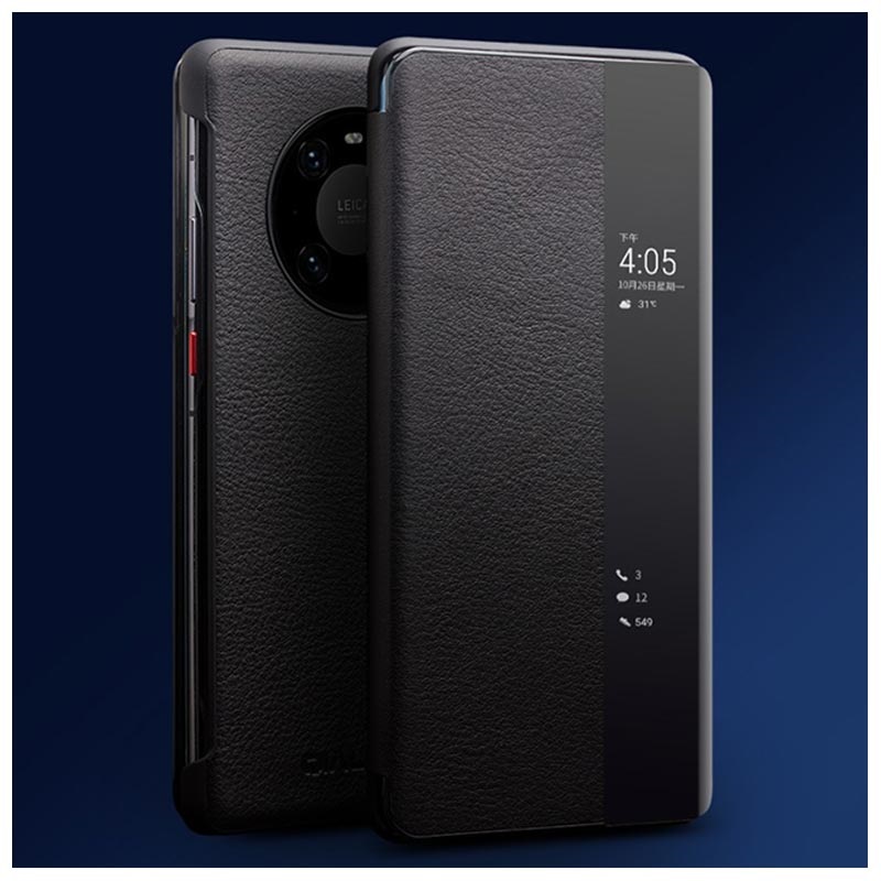 Schützen Sie Ihr Huawei Mate 40 Pro mit dieser Qialino Smart View-Hülle aus echtem Rindsleder.