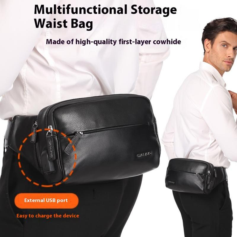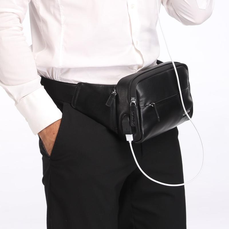 Qialino Tactical Leder Gürteltasche mit USB-Anschluss - Schwarz