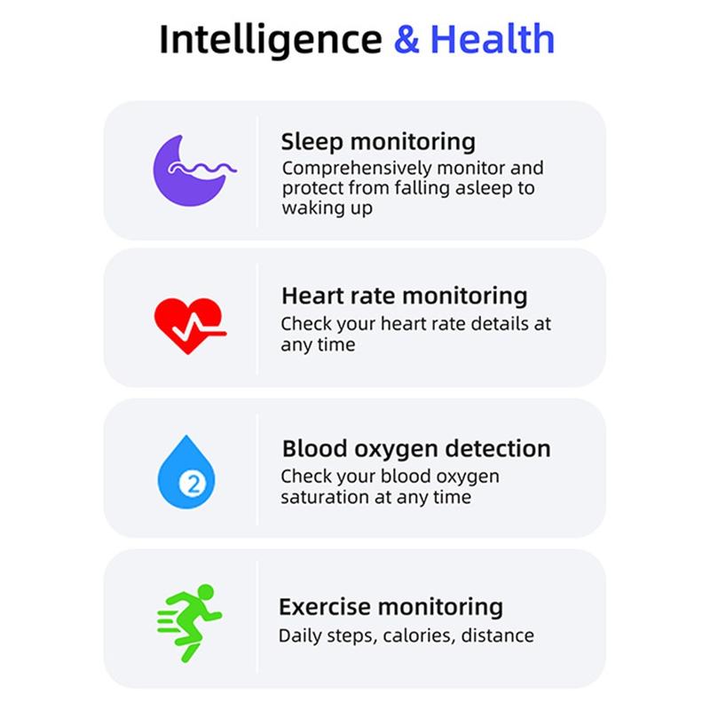 - Umfassendes Gesundheits-Tracking über die Smart Health App - Überwacht Herzfrequenz, Blutsauerstoff, Schlafqualität und Aktivitätslevel.