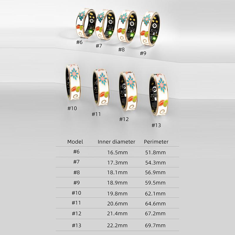 R18 Eleganter Emaille Smart Ring - Wasserdichter Herzfrequenz- und Blutsauerstoff-Fitness-Tracker mit magnetischem Ladegehäuse