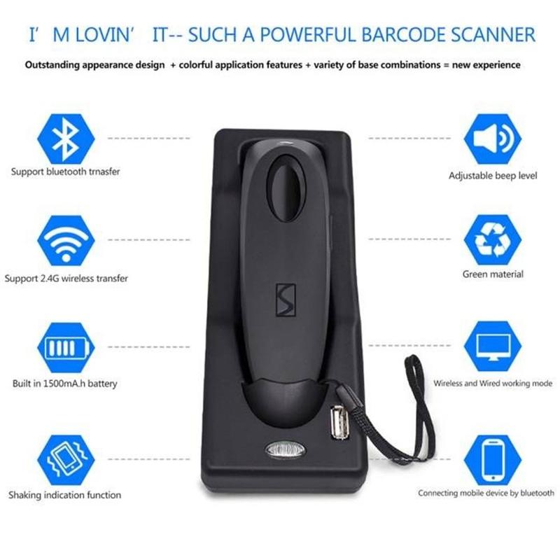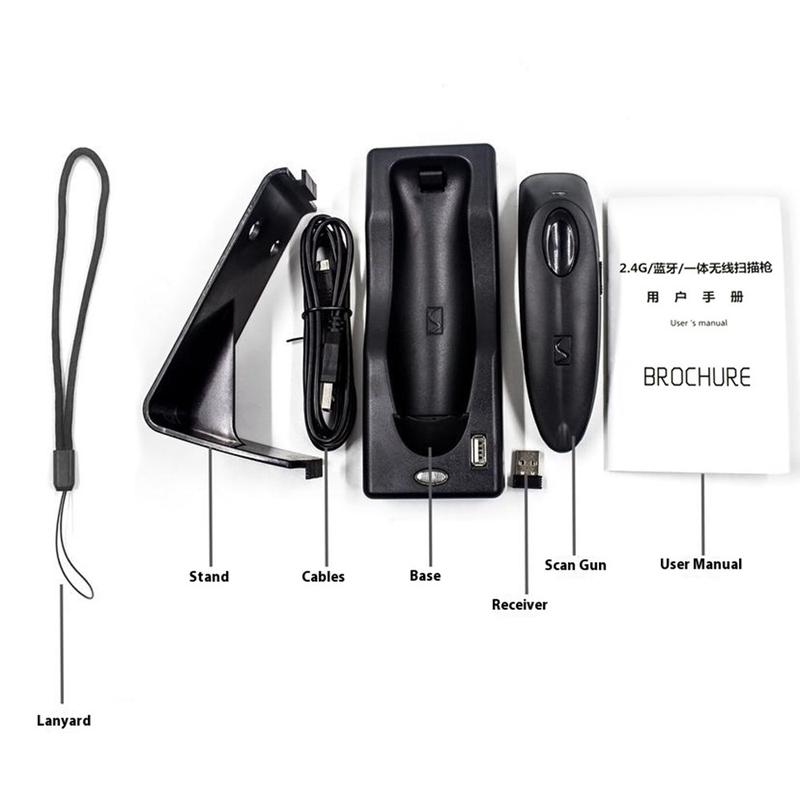 R40 Drahtloser 2D-Barcodescanner - Bluetooth 4.0 & 2.4GHz QR-Code-Leser mit Ladestation, 1500 Scans/s