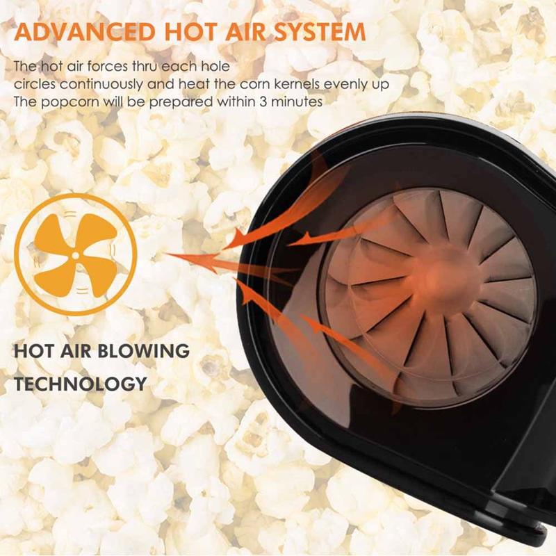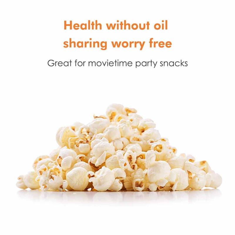 - Hochentwickeltes Heißluftsystem für schnelle, ölfreie Popcornzubereitung