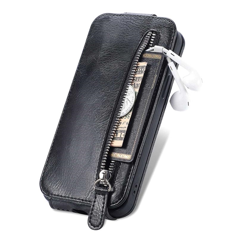 Lassen Sie Ihr Portemonnaie zu Hause und nehmen Sie Ihre wichtigsten Utensilien in einem vertikalen Flip Case mit Reißverschluss mit.