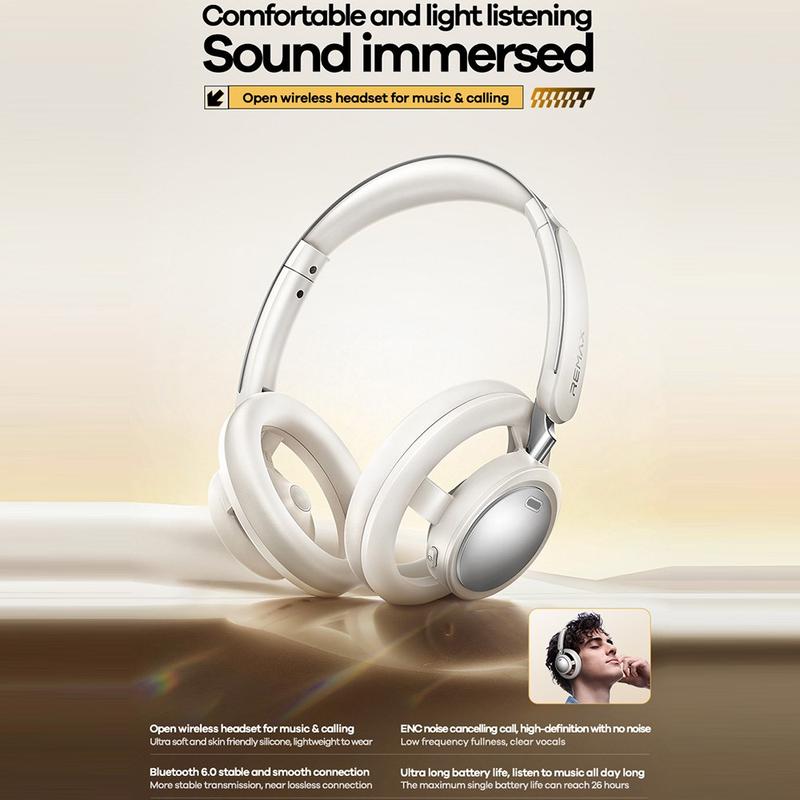 Genießen Sie mit den kabellosen REMAX RB-870-Kopfhörern komfortablen Hörgenuss im Alltag und klarere Anrufe. Das offene Design fühlt sich leicht und atmungsaktiv an und eignet sich daher hervorragend für Arbeitstage, Pendler und Freizeitaktivitäten. Mit Bluetooth 6.0 erhalten Sie eine stabile Verbindung bis zu 10 m, während die ENC-Anrufgeräuschunterdrückung hilft, Umgebungsgeräusche zu reduzieren, damit Ihre Stimme bei Anrufen deutlicher zu hören ist. Die USB-C-Ladung ist bequem und eine vollständige Aufladung dauert etwa 2 Stunden - mit bis zu 30 Stunden Sprechzeit und 100 Stunden Standby, damit Sie länger ohne Akkustress in Verbindung bleiben können.