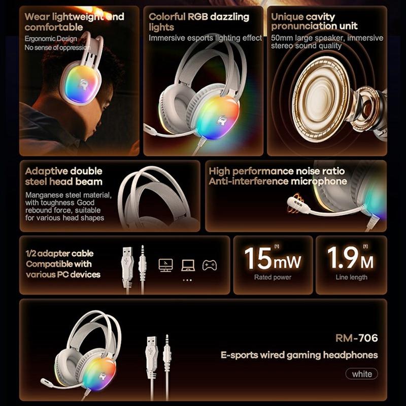 Remax RM-706 kabelgebundener Over-Ear-Kopfhörer / Gaming-Headset mit Mikrofon und buntem RGB-Licht