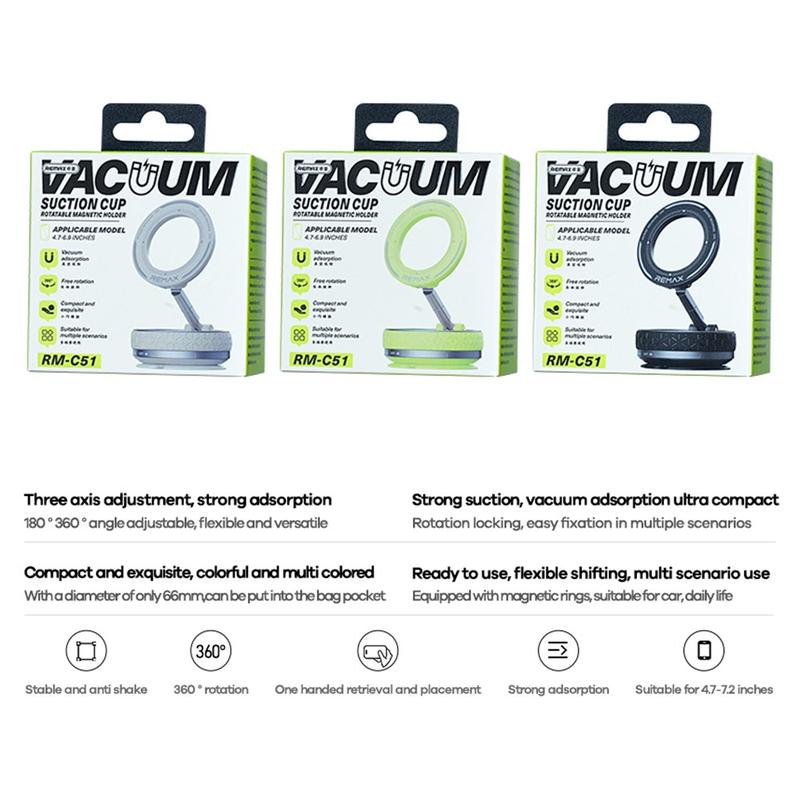 REMAX RM-C51 3-Achsen-Magnet-Telefonhalterung - Vakuum-Saugnapfhalterung für Auto, Haus und Reise