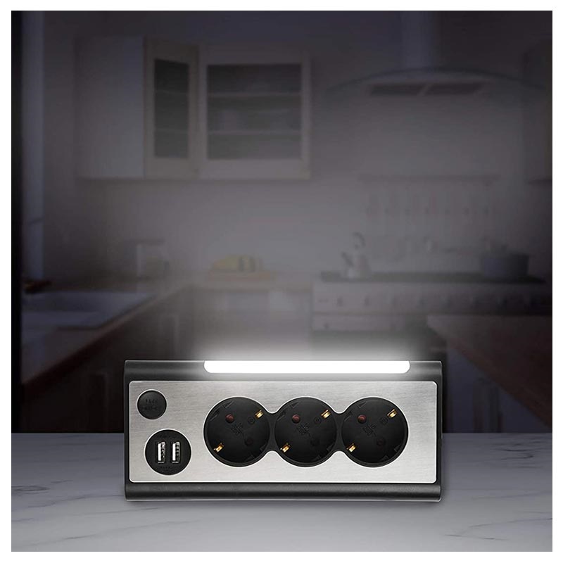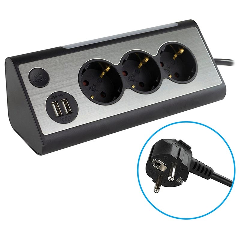 REV-Lichtsteckdosenleiste mit USB und LED-Licht - Typ F