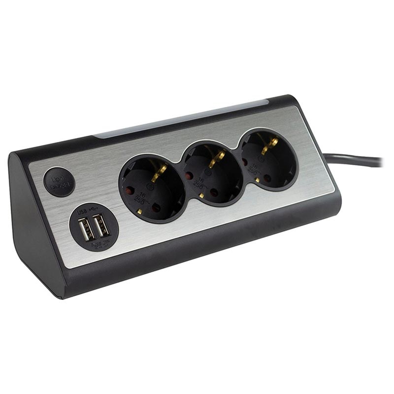 Die REV Light Socket Steckdosenleiste verfügt über ein abgewinkeltes Design, das sich perfekt für den Einsatz auf Schreibtischen, Küchentheken und anderen Oberflächen eignet und Ihnen einen einfachen Zugriff auf drei Steckdosen ermöglicht.