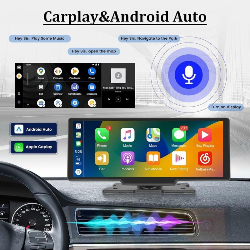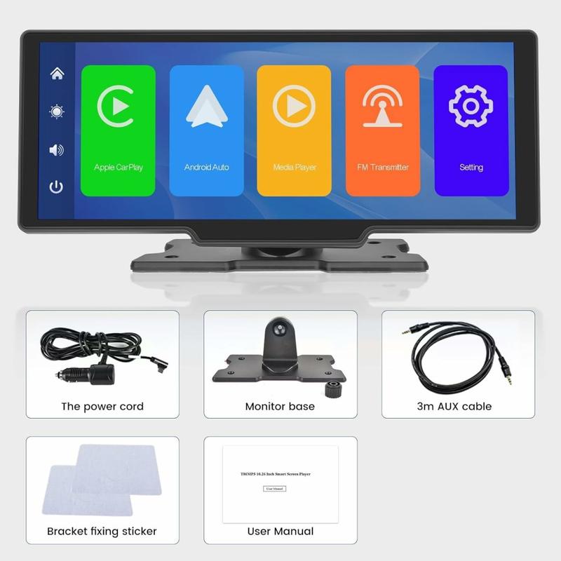 • RH-W517 10.3" drahtloser CarPlay / Android Auto Bildschirm - HD Touch Display mit FM Transmitter & Bluetooth Konnektivität