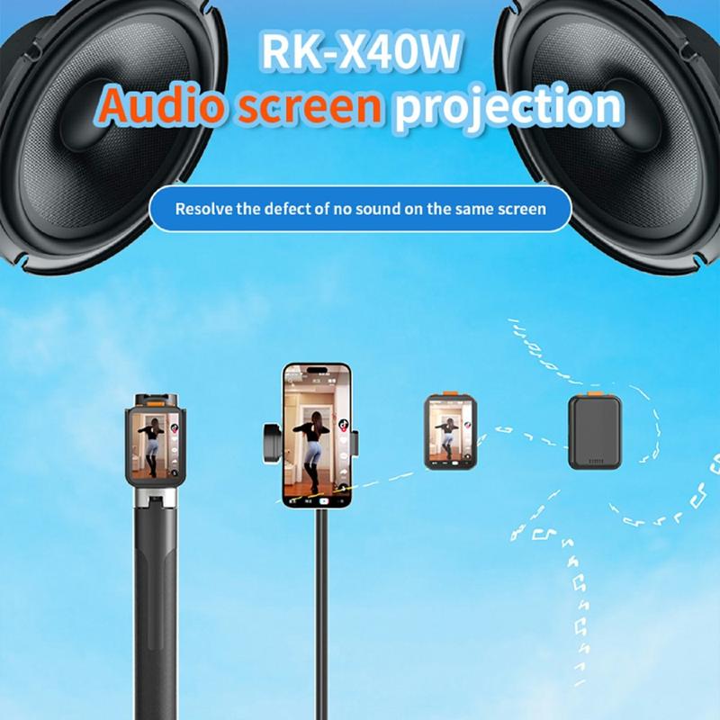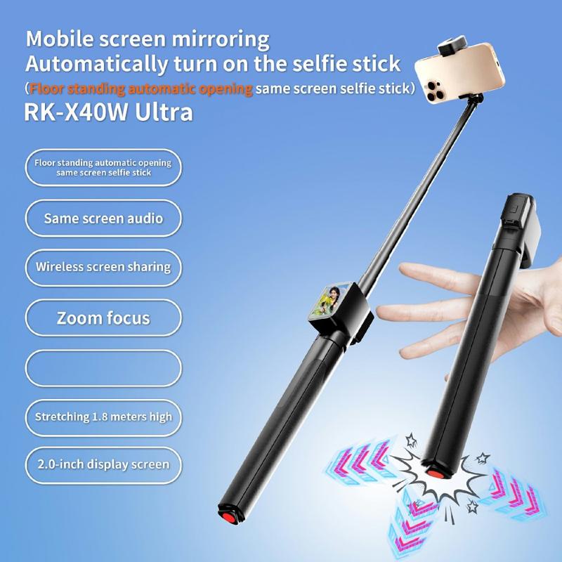 RK-X40W Ultra Smartphone Selfie Stick & Stativ mit Auto Pop-Open Stand, 2.0-Zoll Bildschirmspiegelung, WiFi & Bluetooth