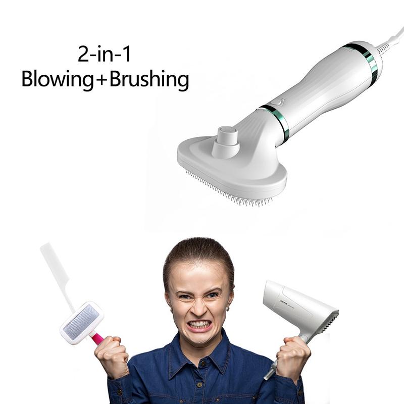 Wenn Sie schon einmal versucht haben, Ihr Haustier mit einer Hand zu trocknen und mit der anderen zu bürsten, wissen Sie, wie schwierig das sein kann. Dieses 2-in-1-Gerät vereinfacht die Routine: weniger Unordnung, weniger Zeitaufwand, weniger Werkzeuge und ein angenehmeres Pflegeerlebnis. Es ist eine großartige Wahl für Haustierbesitzer, die zu Hause den Komfort eines Profis wünschen - ohne ein überdimensioniertes Bürstengebläse.