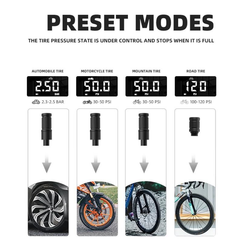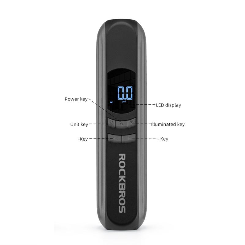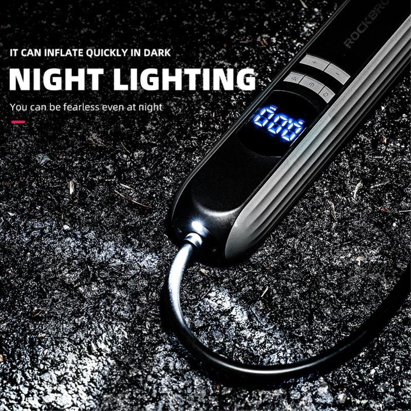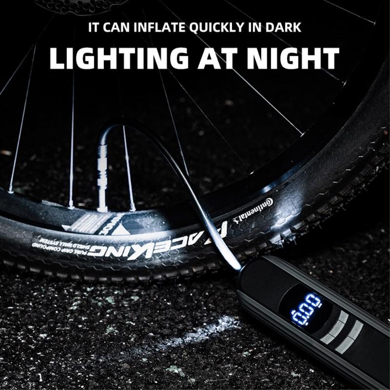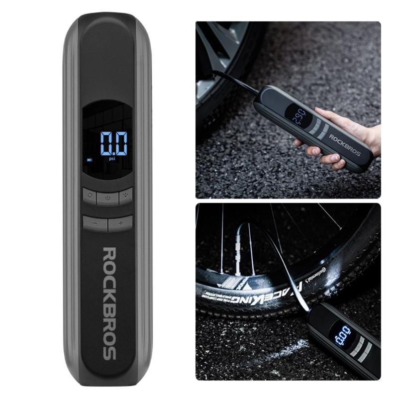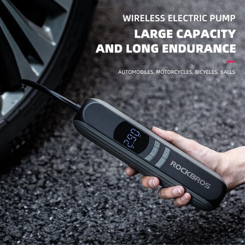 • ROCKBROS A10 Auto-Motorrad-Fahrrad-Reifenluftpumpe Tragbare kabellose elektrische Fahrzeug-Reifenfüllpumpe mit LED-Licht