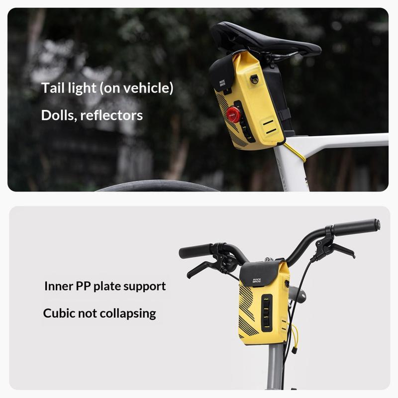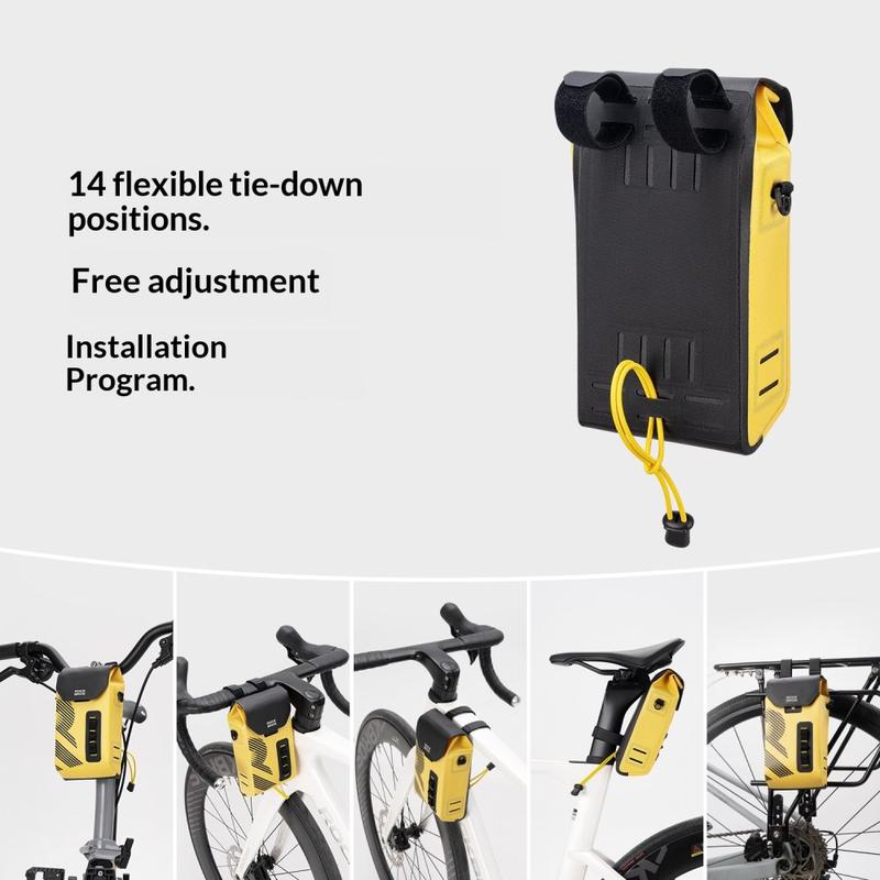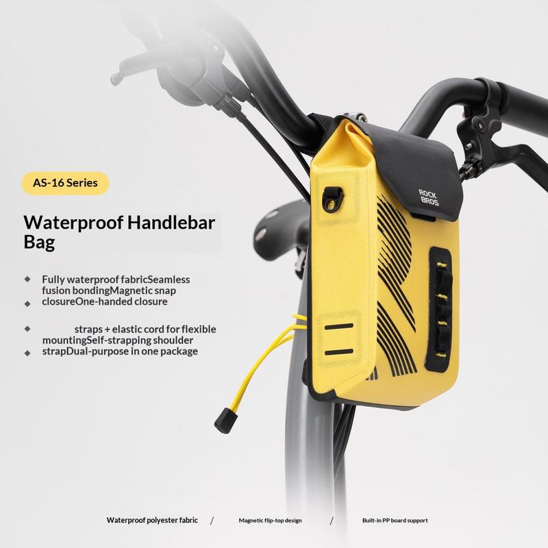 Mit der ROCKBROS AS-160 Lenkertasche können Sie Ihre wichtigsten Utensilien bei jedem Wetter sicher transportieren. Sie wurde für Rennräder, Mountainbikes und Klappräder entwickelt und kombiniert wasserdichtes Material mit nahtlosen Schweißnähten, damit Ihre Sachen auch bei Regenfahrten trocken bleiben. Der magnetische Klappdeckel ermöglicht einen schnellen Zugriff mit einer Hand während der Fahrt, und der strukturierte Innenraum mit PP-Plattenverstärkung hält die Tasche auch im gefüllten Zustand stabil und formschön. Dank des abnehmbaren Schultergurts lässt sich die Tasche in Sekundenschnelle von einer Fahrradtasche in eine lässige Umhängetasche verwandeln.