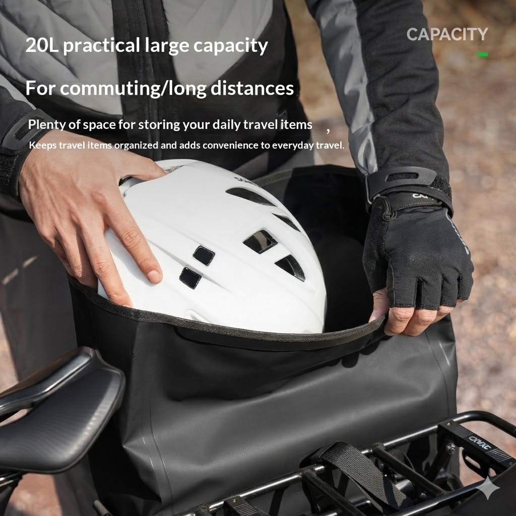 - Großes Fassungsvermögen von 20l, geeignet für den Weg zur Arbeit, zum Einkaufen und für Radtouren