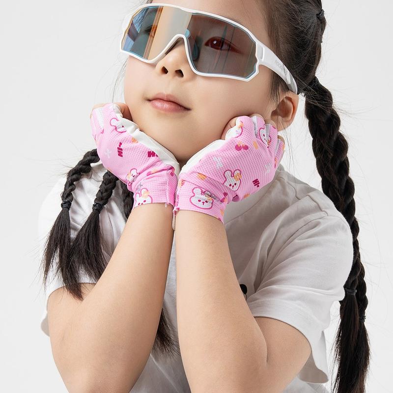 • Rockbros Kinder-Fahrradhandschuhe mit Cartoon-Motiv / Atmungsaktive Halbfinger-Fahrradhandschuhe mit stoßdämpfender Handfläche