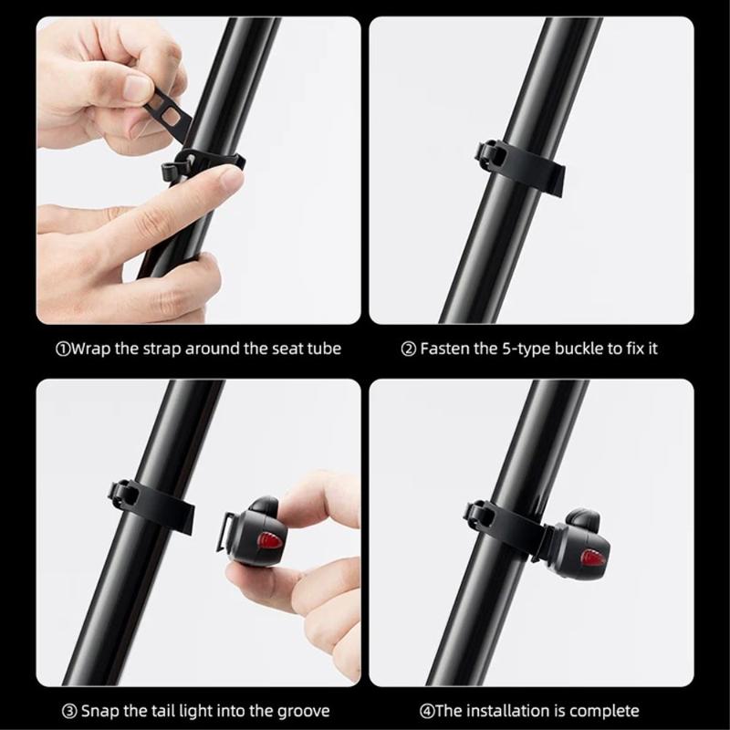 Das Fahrrad-Bremslicht ist aus wasserdichtem IPX6-Material gefertigt, das eine sichere Verwendung auch bei starkem Regen ermöglicht. Dieses leichte und robuste Licht kann an Mountainbikes, Rennrädern und Kinderfahrrädern montiert werden. Einfach zu montieren mit dem Silikon-Befestigungsband, das vier Öffnungen hat, die eng um die meisten Lenker und Sattelstützen passen