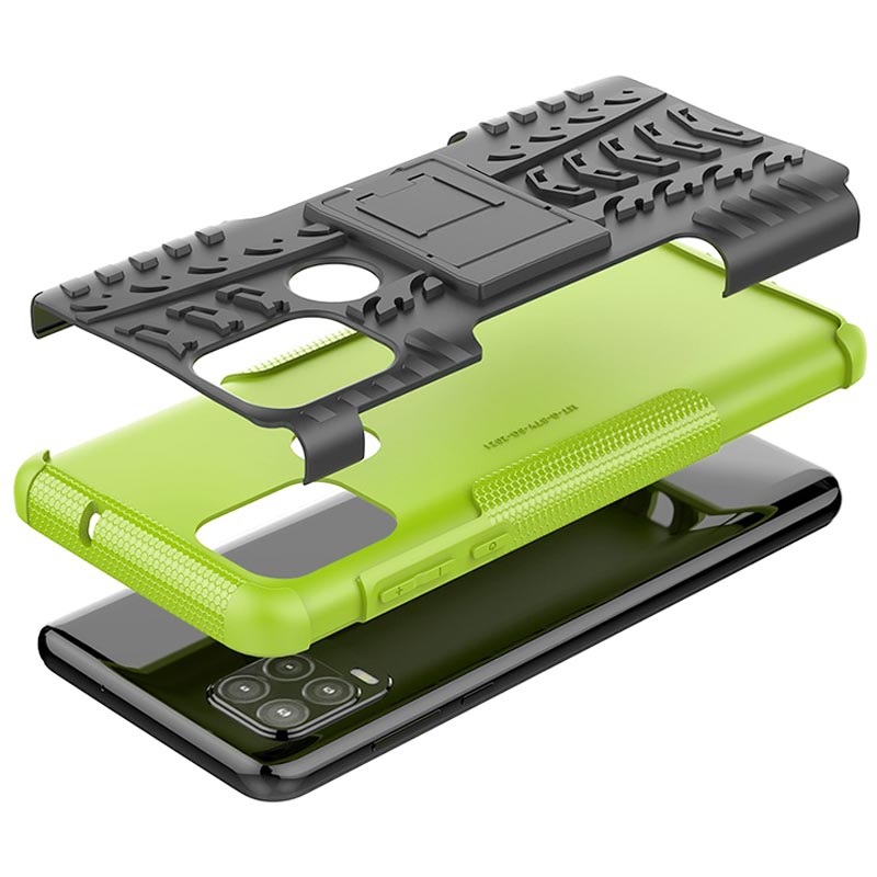 Rutschfeste Xiaomi Redmi 9C, Redmi 9C NFC Hybrid Hülle mit Ständer - Grün / Schwarz