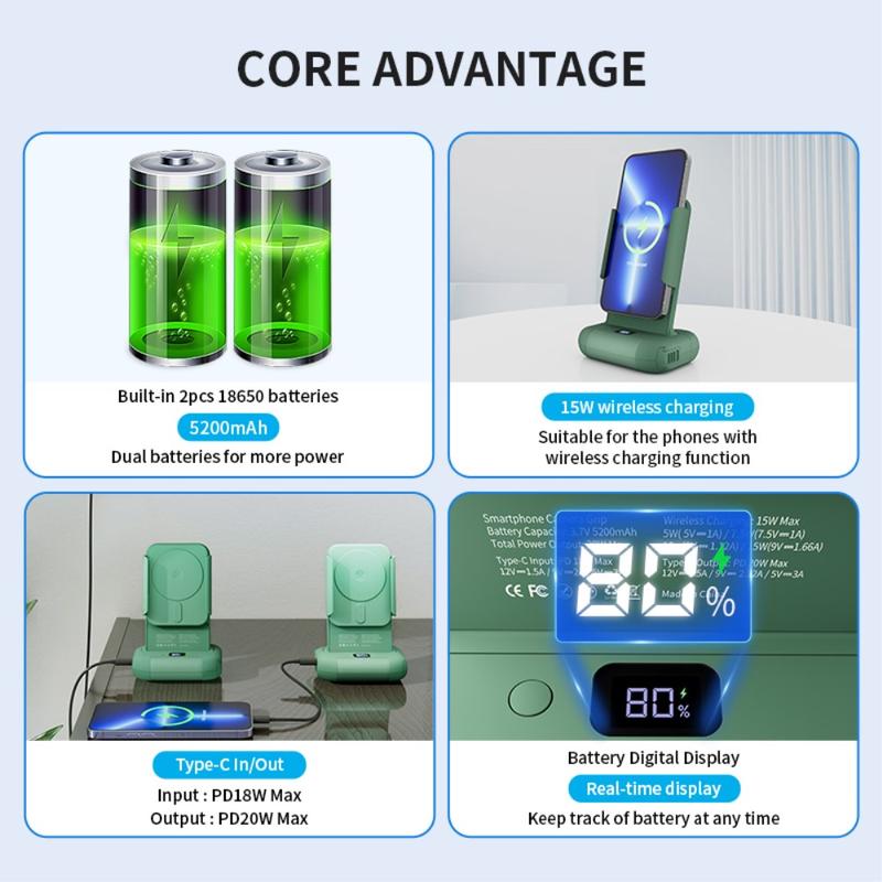 - Kabellose Ladefunktionalität: Unterstützt schnelles kabelloses Laden mit 15W, so dass Sie Ihr Gerät aufladen können, während Sie Fotos oder Videos aufnehmen, ohne dass Sie Kabel benötigen.