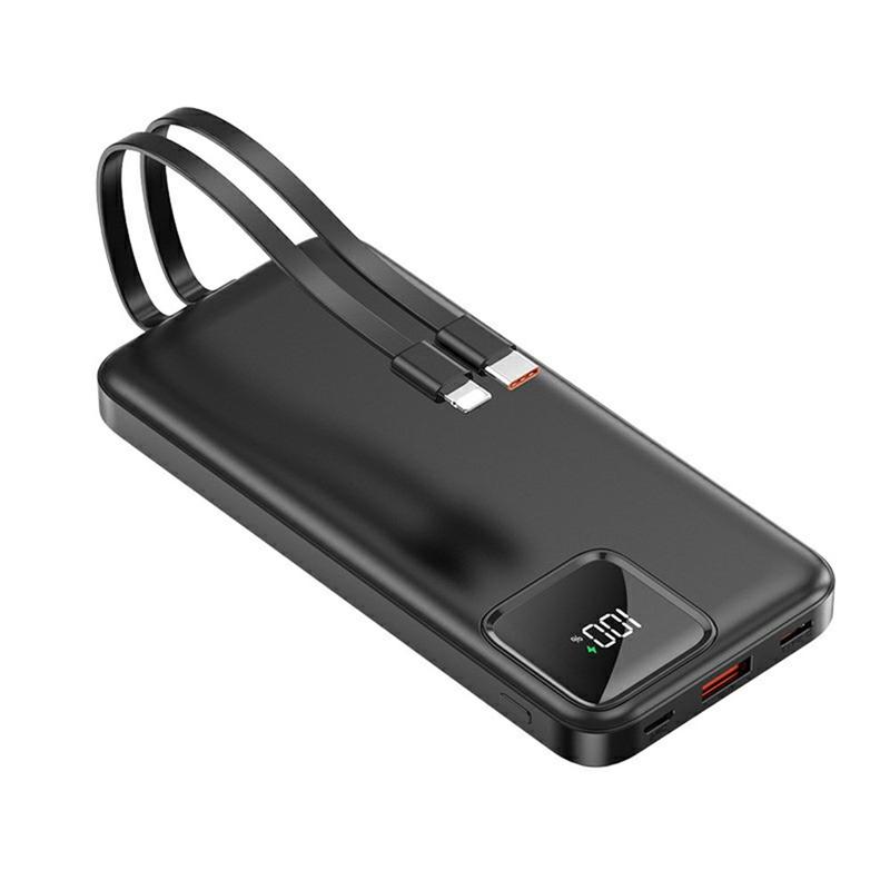 • S38N Slim 10000mAh Power Bank - 22.5W Schnellladung mit integriertem USB-C & Lightning Kabel, digitaler Batterieanzeige, Multi-Port Ausgang