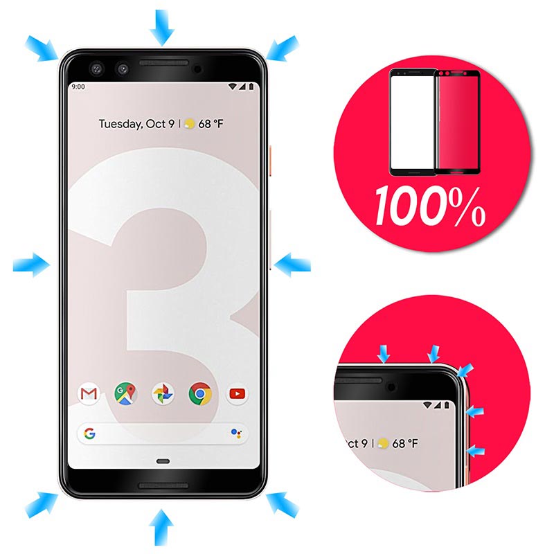 Saiis gehärtetes Glas für das Google Pixel 3 verfügt über eine Härte von 9 Stunden und eine kratzfeste Oberfläche, die den Bildschirm vor Beschädigungen schützt. Die oleophobe Beschichtung minimiert Fingerabdrücke und Flecken, während der farbige Rahmen perfekt mit Ihrem Google Pixel 3 harmoniert und perfekt aussieht.