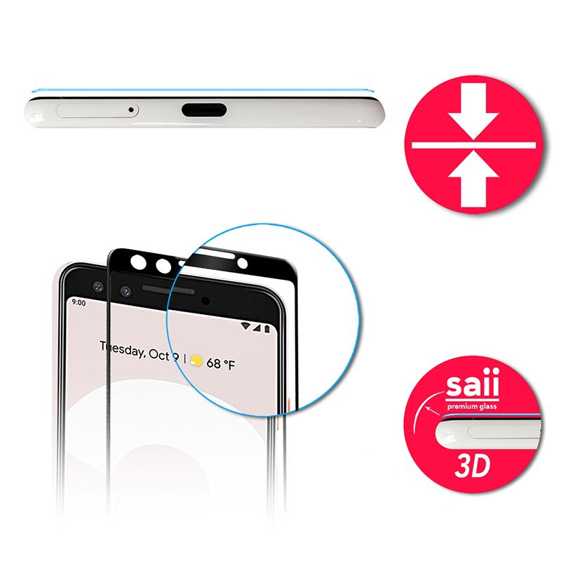 Saii Premium 3D Google Pixel 3 Panzerglas - 9H, 0.33mm - 2 Stk.