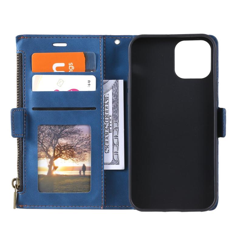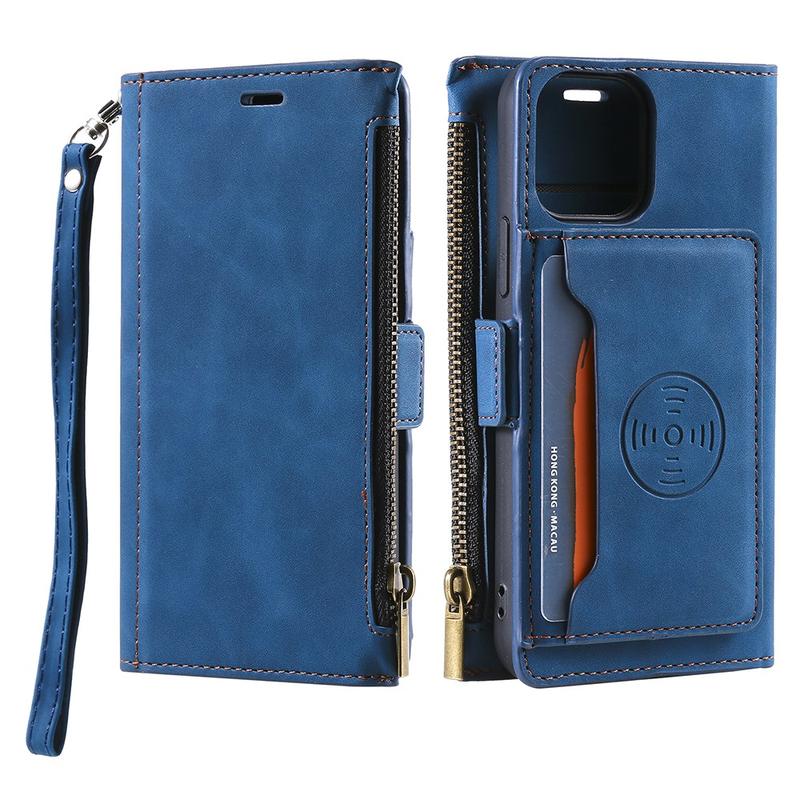 Saii Reißverschluss Schutzhülle mit Geldbörse und Riemen für iPhone 15 Plus