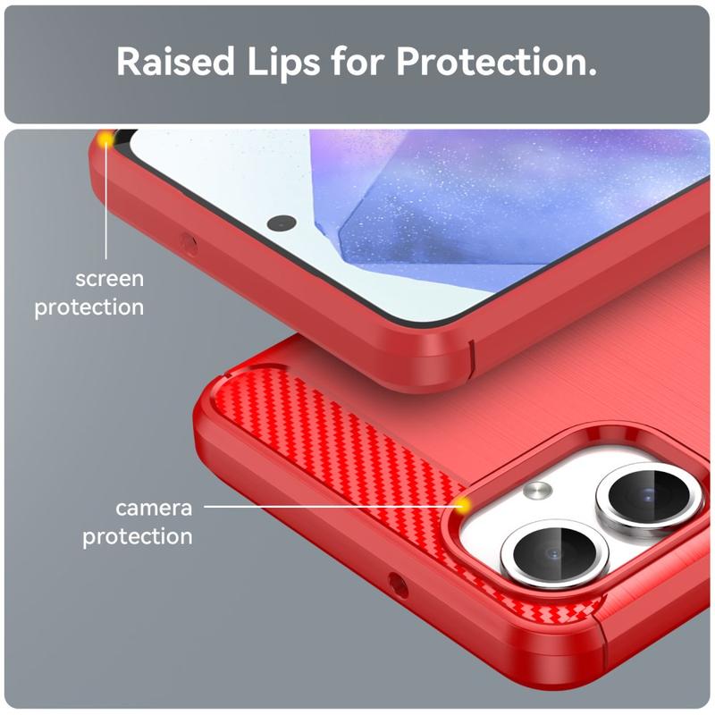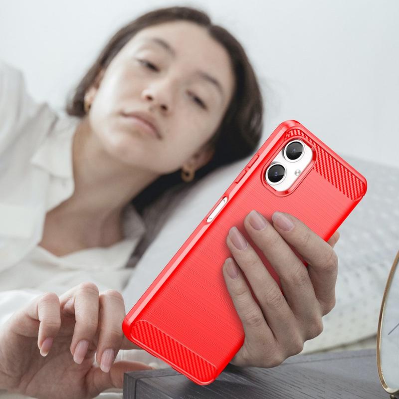 Das Brushed TPU Case schützt Ihr Samsung Galaxy A06 angemessen und verleiht ihm dank des Kohlefasermusters auf der Rückseite einen tollen Stil. Die Hülle schützt Ihr Samsung Galaxy A06 auch vor Überhitzung, indem sie die Wärme ableitet.
