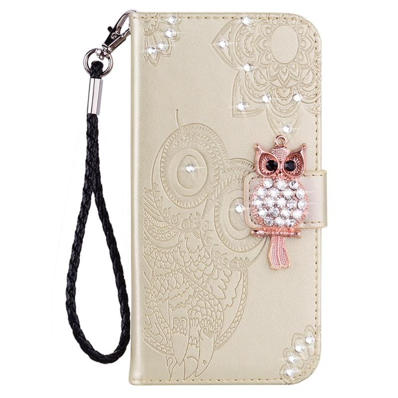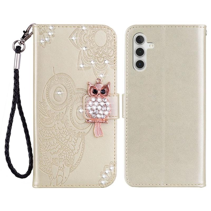 Samsung Galaxy A15 Eule Strass Wallet Case - Gold