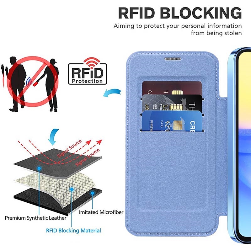 - Merkmale: Kartenschlitz, starker Magnet für automatisches Schließen, RFID-Blockierungstechnologie, eingebauter Magnetring