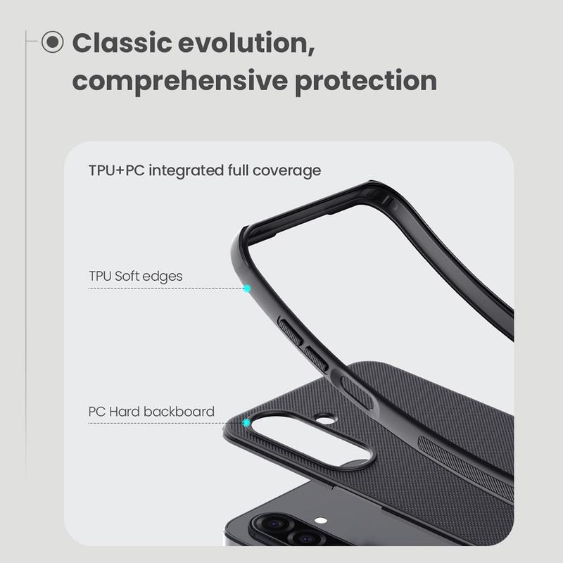 Die Nillkin Frosted Shield Pro Magnetic Hybridhülle bietet ein angenehmes Tragegefühl und starken Schutz vor täglicher Abnutzung. Dank der Kombination aus umweltfreundlichem PC und flexiblem TPU ist Ihr Samsung Galaxy A17 bestens geschützt. Die Hybridhülle Nillkin Frosted Shield Pro Magnetic enthält außerdem einen integrierten Magnetring, der mit kabellosem Laden kompatibel ist, sodass Sie Ihr Samsung Galaxy A17 von nun an mit der Hülle aufladen können.