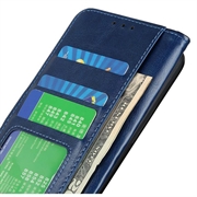 Verleihen Sie Ihrem neuen Samsung Galaxy A17 einen raffinierten Vintage-Look und ersetzen Sie gleichzeitig Ihr tägliches Portemonnaie. Die Außenseite aus Polyurethan mit Crazy-Horse-Struktur und die stoßdämpfende TPU-Schale schützen vor Stürzen und Kratzern, während clevere Fächer für Karten und Bargeld sorgen.