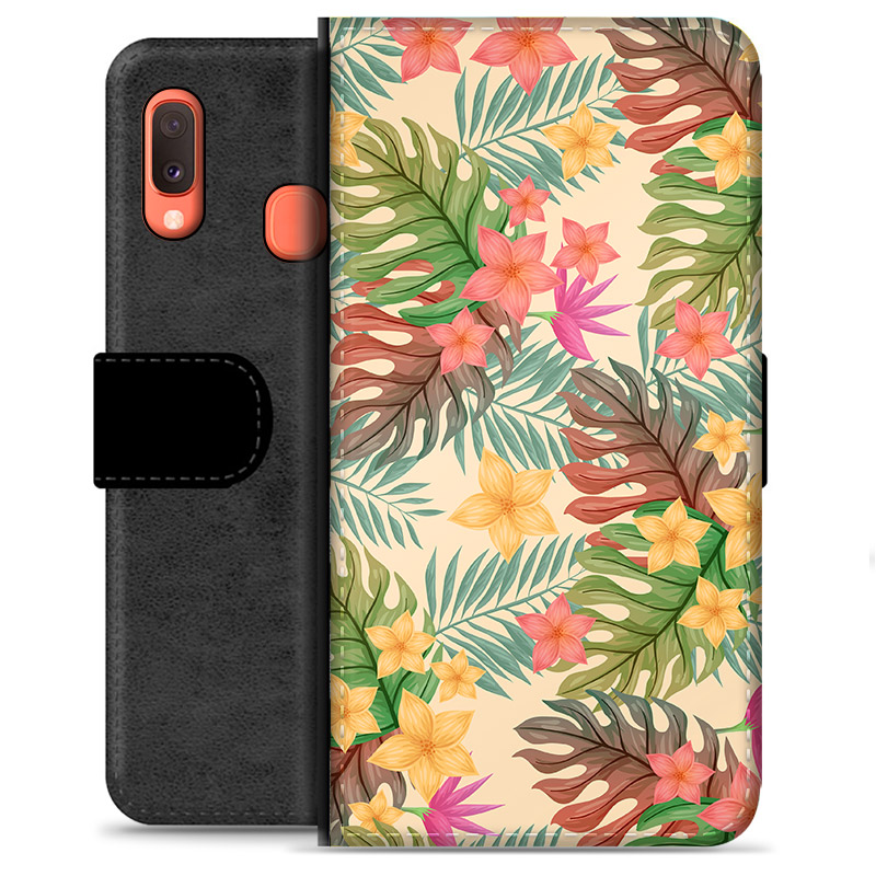 Samsung Galaxy A20e Premium Schutzhülle mit Geldbörse - Pinke Blumen
