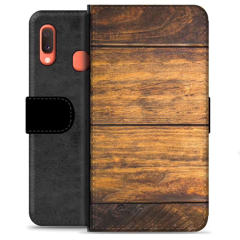 Samsung Galaxy A20e Premium Schutzhülle mit Geldbörse - Holz
