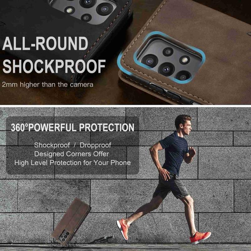 Eine Kombination aus TPU und Polyurethan bietet Rundumschutz für das Samsung Galaxy A23 5G und schützt es vor Staub, Schmutz, Stößen, Kratzern und täglichem Verschleiß. Die magnetische Anziehungskraft hält Dale Hülle geschlossen, und das clevere Design ermöglicht eine freihändige Nutzung, während Sie Medieninhalte ansehen.