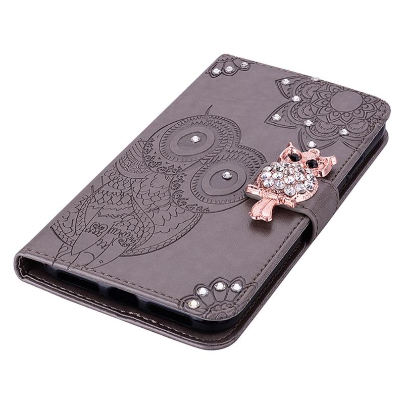 Samsung Galaxy A25 Eule Strass Wallet Hülle - grau