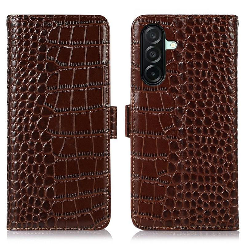 • Crocodile Serie Lederhülle mit Geldbörse mit RFID für Samsung Galaxy A27