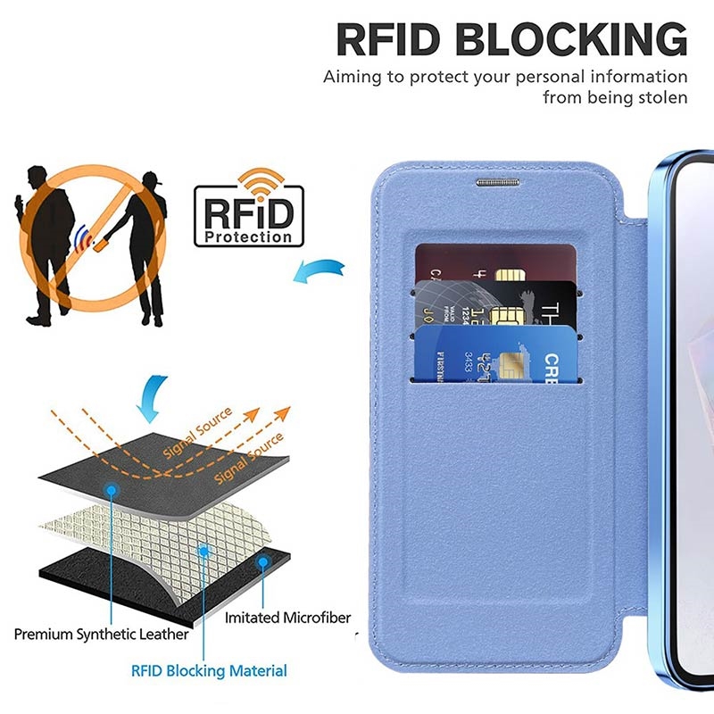 - Merkmale: Kartenschlitz, starker Magnet für automatisches Schließen, RFID-Blockierungstechnologie, eingebauter Magnetring