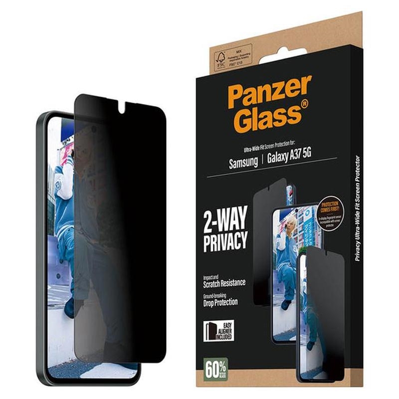 - Der PanzerGlass Ultra-Wide Fit Privacy EasyAligner Displayschutz ist NICHT mit dem Fingerabdrucksensor des Samsung Galaxy A37 kompatibel