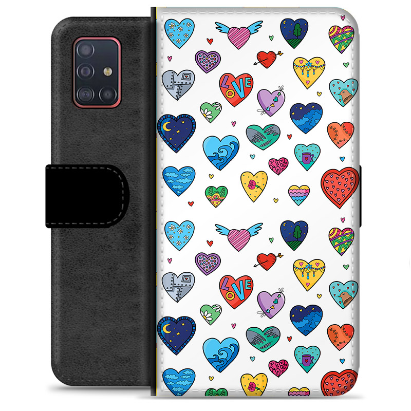 Samsung Galaxy A51 Premium Schutzhülle mit Geldbörse - Herzen