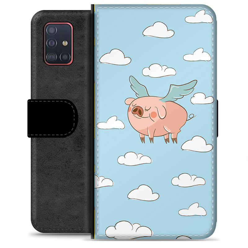 Samsung Galaxy A51 Premium Schutzhülle mit Geldbörse - Fliegendes Schwein