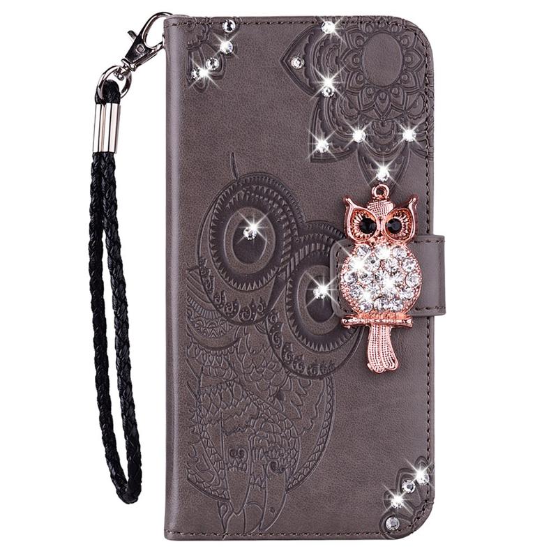 Samsung Galaxy A55 Eule Strass Wallet Case - grau